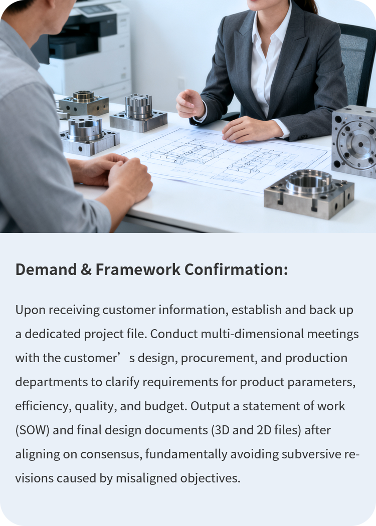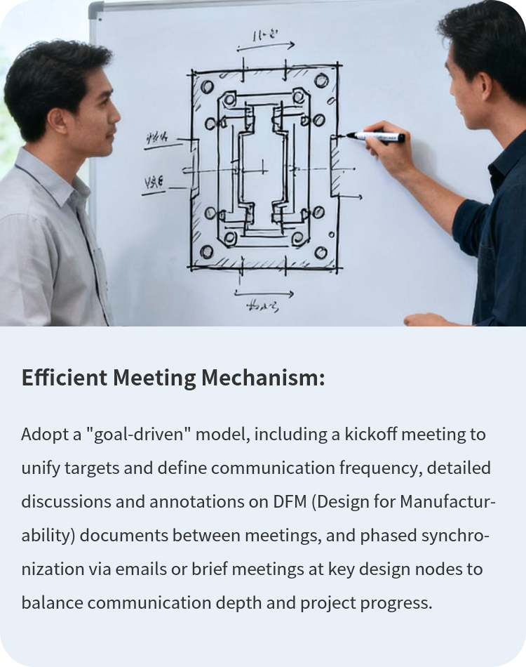 To ensure the success of mold design prior to production, four core systematic processes are implemented, focusing on accurate demand alignment, detail control, efficient communication, and cross-cultural adaptation.