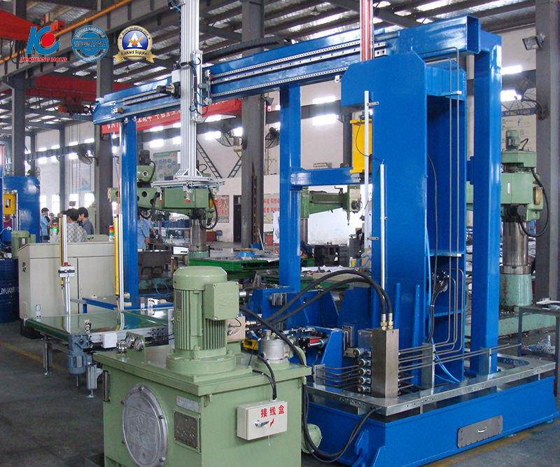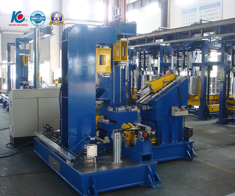 It is punching mould for inner liner of refrigerator cabinet,the upper and lower moulds adopt the guide column and guide sleeve for accurate guidance with using the hydraulic system as the power unit and the oil cylinder as the executive element,equipped with punching position detection to achieve all the holes of cabinet inner liner are punched at one time.The punching size is accurate and stable,and the mould is efficient,safe and reliable.